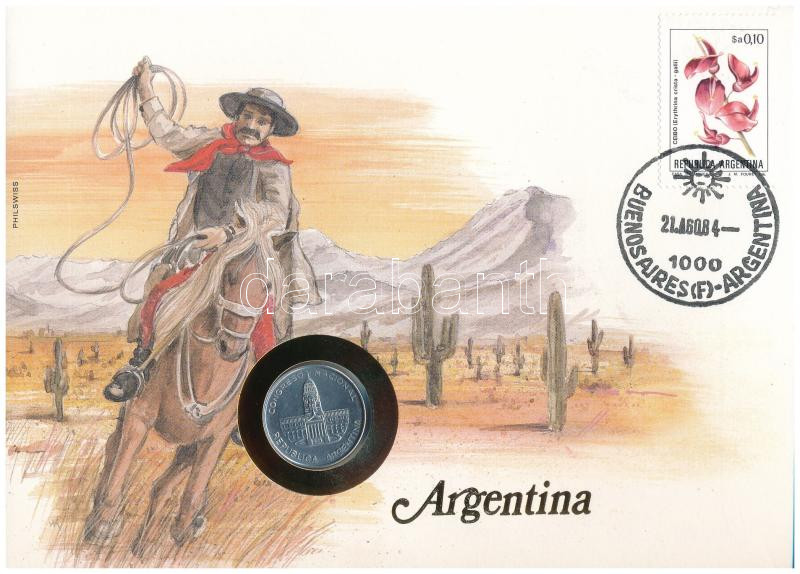 Argentína 1984. 1P Al felbélyegzett borítékban, bélyegzéssel, német ny... https://www.darabanth.com/en/491-Online-auction/491.0/Numismatics/Envelopes-with-Coins-and-Banknotes~2000005/Argentina-1984-1P-Al-felbelyegzett-boritekban-belyegzessel-nemet-nyelvu-leirassal-TXF-~II3267066