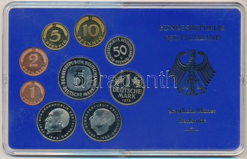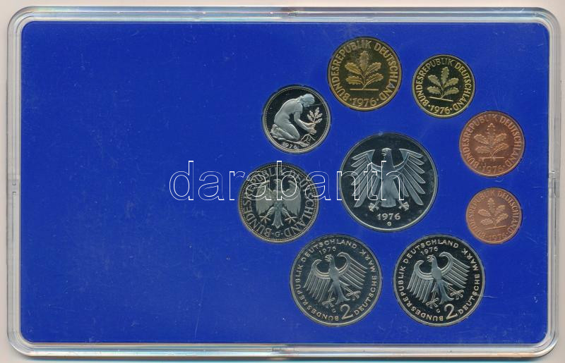 Német Szövetségi Köztársaság 1976G 1pf-5M (9xklf) forgalmi sor műanyag... https://www.darabanth.com/en/491-Online-auction/491.0/Numismatics/Foreign-Coin-sets~2000016/Nemet-Szovetsegi-Koztarsasag-1976G-1pf-5M-9xklf-forgalmi-sor-muanyag-disztokban-TPP-halvC3~II3265383