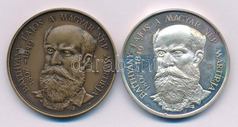Description: Horváth László (1951-) / Nagy Lajos (1949-) 1990. "Batthyány Lajos A Magyar Nép Mártírja 1807-1849 - MÉE " Ag és Br emlékérem pár (34,67g/0.835/42,5mm) T:AU (PP) felületi karc, AU Adamo BP33