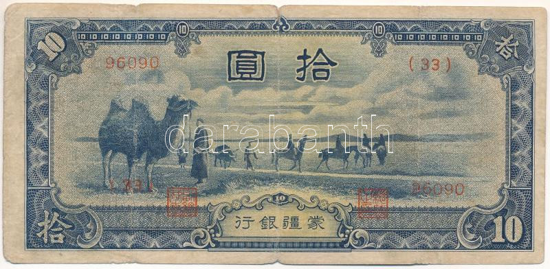 Kína / Japán bábállamok / Mengjiang DN(1944) 10Y "(33) 96090"... https://www.darabanth.com/en/491-Online-auction/491.0/Numismatics/Worldwide-banknotes~2000014/Kina-Japan-baballamok-Mengjiang-DN1944-10Y-33-96090-TVG-kis-szakadasok3Cbr-3E-China~II3375368