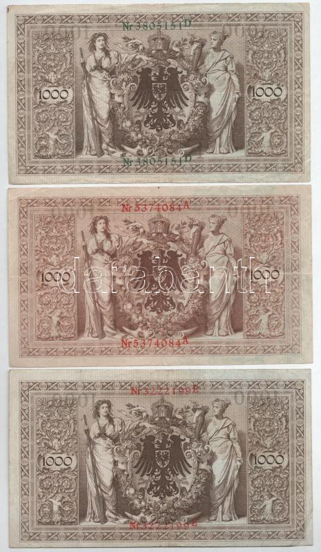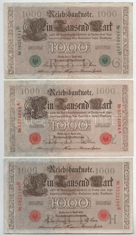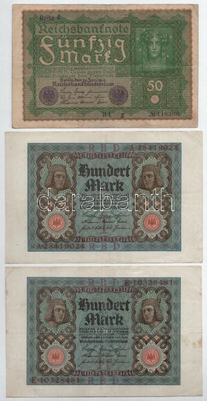 Német Birodalom / Weimari Köztársaság 1919. 50M + 1920. 100M (2x) + 1910. 1000M piros pecsét, hétjegyű sorszámmal (2x) + 1910. 1000M zöld pecsét, hétjegyű sorszámmal T:F German Empire / Weimar Republic 1919. 50 Mark + 1920. 100 Mark (2x) + 1910. 1000 Mark with red seal, 7 digit serial (2x) + 1910. 1000 Mark with green seal, 7 digit serial C:F Krause P#44b, P#45b, P#69b