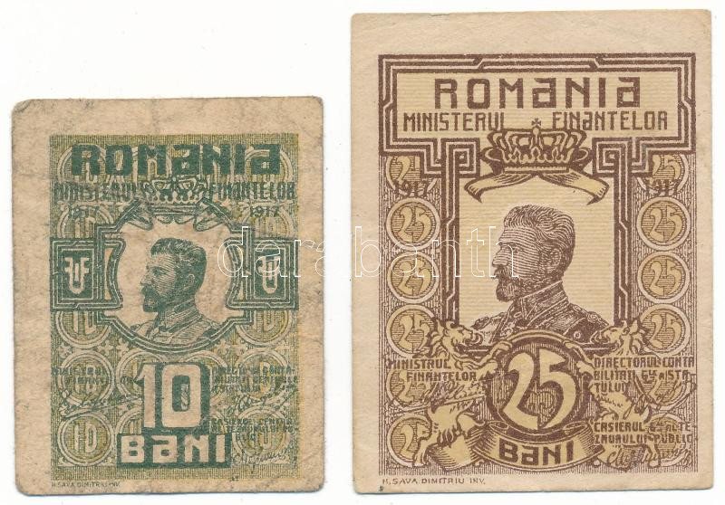 Description: Románia 1917. 10b + 25b "Pénzügyminisztérium" T:F, egyiken ragasztó a hátlapon