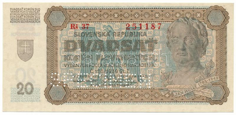 https://www.darabanth.com/en/491-Online-auction/491.0/Numismatics/Worldwide-banknotes~2000014/Szlovakia-1942-20K-SPECIMEN-MINTA-perforacioval-Rs-37-251187-TAU-Slovakia-1942-20-Kor~II3284893