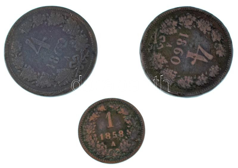 Ausztria 1858A 1kr Cu + 1860A 4kr Cu (2x) T:F Austria 1858A 1 Kreuzer ...