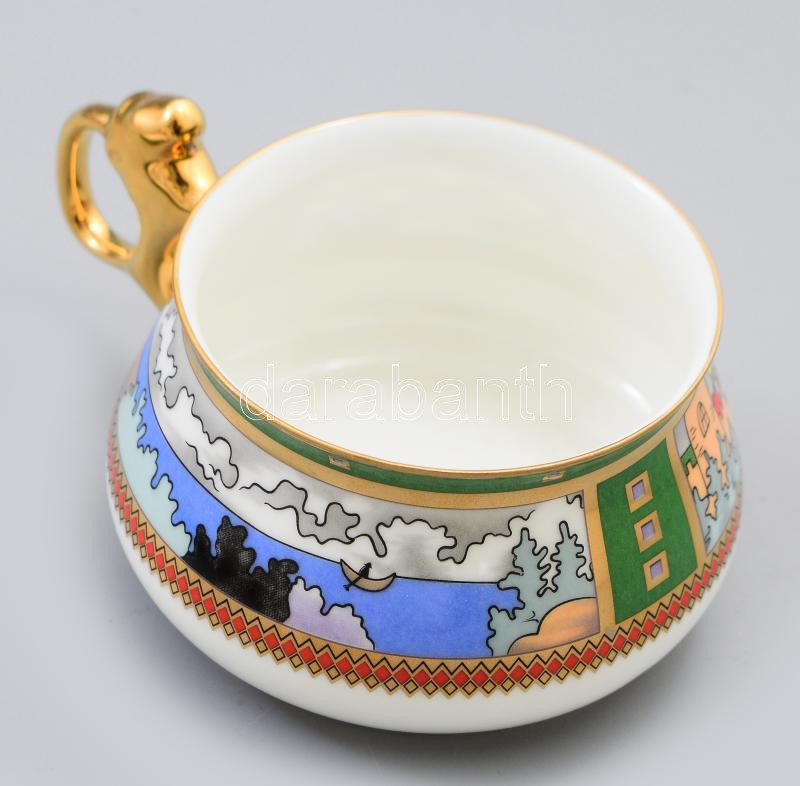 Lomonosov "Falu a tavon" csésze alátéttel, jelzett, hibátlan...