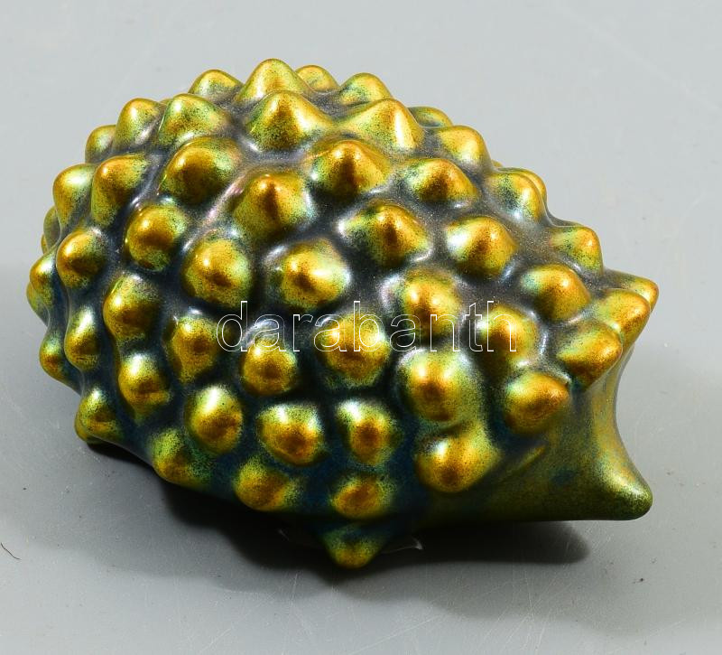 Zsolnay süni figura eozin mázas. Jelzett, hibátlan 8 cm
