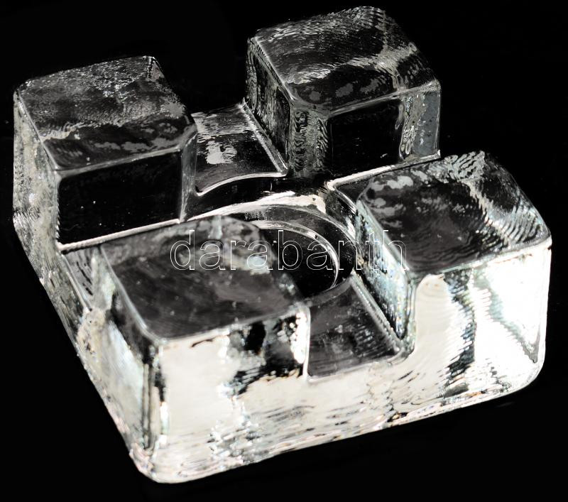 Skandináv öntött kristály mécsestartó asztaldísz, 13x13 cm