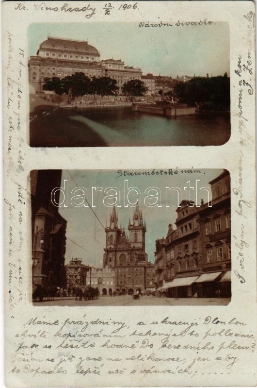 1906 Praha, Prag, Prague; Královské Vinohrady, Národní Divadlo, Staroméstské nám. / National Theater, Old Town with Tyn Church. photo (EK)