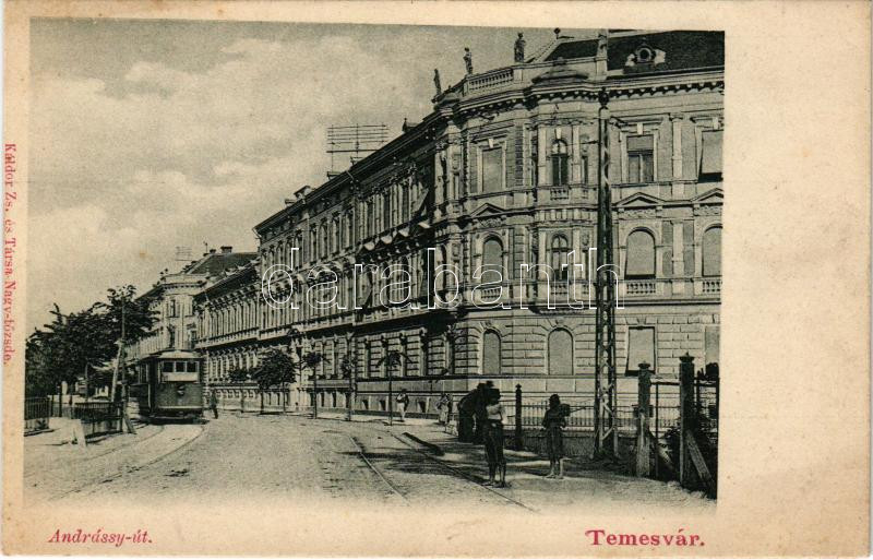 Temesvár, Timisoara; Andrássy út, villamos. Káldor Zs. és Társa kiadás...