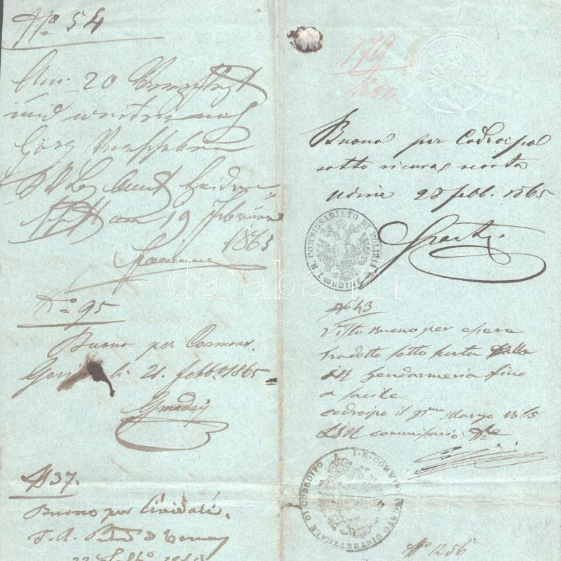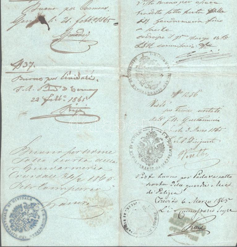 1863-1865 Útlevél (Schub-Paß / Tolonczlevél) részlet sok bejegyzéssel