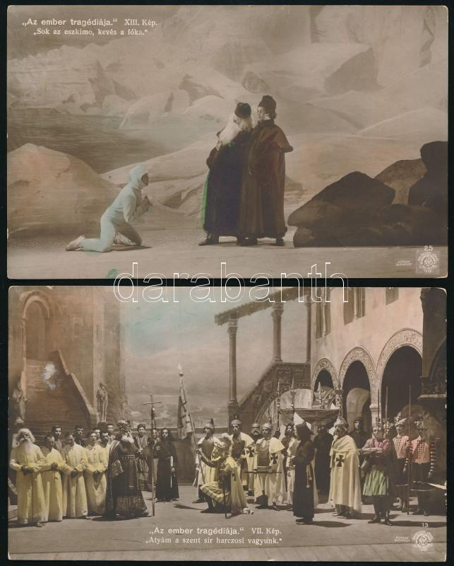 1913 Verzár Ödön orvostanhallgatónak szóló két képeslap az ember Tragédiája jelenetével