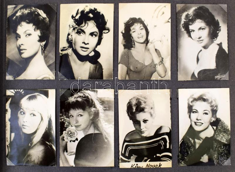 Erotikus fotóalbum, közte színésznőkről és erotikus grafikákról készült fotókkal, főként 9,5×6,5 cm-es méretben