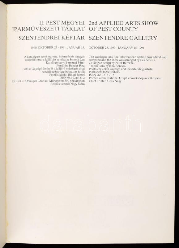 II. Pest Megyei Iparművészeti Tárlat Szendtendrei Képtár 1990. október... https://www.darabanth.com/en/496-Online-auction/496.0/Books/Books-Architecture-Art~2000107/II-Pest-Megyei-Iparmuveszeti-Tarlat-Szendtendrei-Keptar-1990-oktober-23-1991-januar-5-S~II3249616