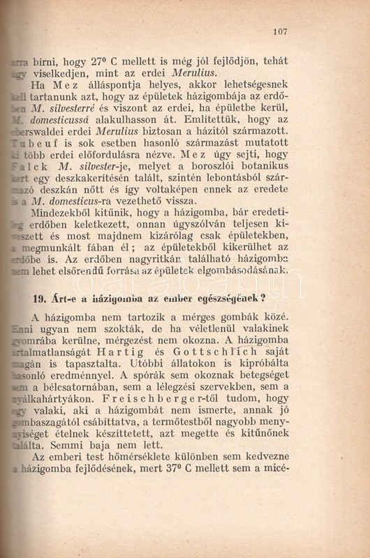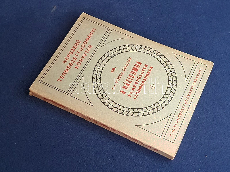 Moesz Gusztáv (1873-1946) botanikus, mikológus, mikrobiológus, a Magyar Nemzeti Múzeum növénytárának igazgatója. Rövid, ismeretterjesztő munkájában évtizedes gombatani tapasztalatait foglalja össze az épületek, a faanyag és a falak gombásodása témájában, az utolsó fejezetben az épület-felújítások utáni gombásodások jogi vonatkozásaira is kitérve.