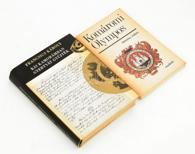 Szénássy Zoltán: Komáromi Olympos. Pozsony, 1984, Madách. Fekete-fehér képekkel illusztrálva. Kiadói papírkötés. + Francsics Károly: Kis Kamorámban gyertyát gyújték. Vál. és sajtó alá rendezte: Vörös Károly. Bp., 1973, Magvető. Kiadói egészvászon-kötés, kiadói papír védőborítóban.