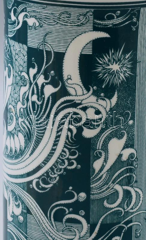 Hollóházi Szász Endre által tervezett mintával díszített zöld váza, ma...