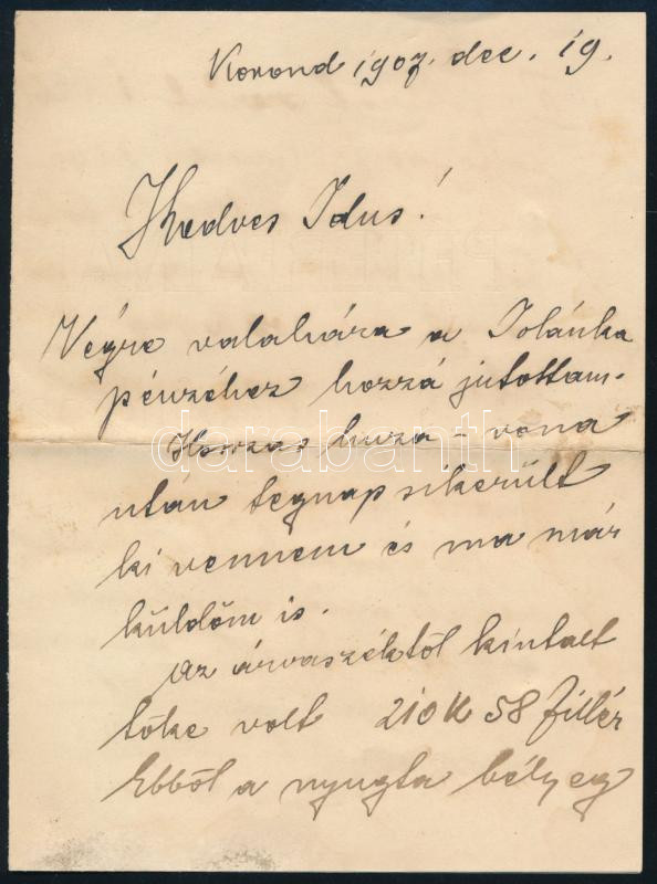 https://www.darabanth.com/en/496-Online-auction/496.0/Foreign-philately-and-postal-history/Documents~1000081/1907-Korond-peterfalvai-vizjeles-papirra-irt-level-penzugyekrol~II3388417