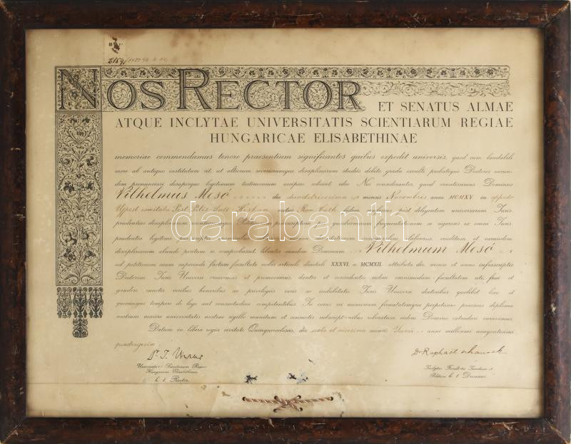 https://www.darabanth.com/en/496-Online-auction/496.0/Foreign-philately-and-postal-history/Documents~1000081/1940-Meso-Vilmos-jogaszi-diplomaja-Uvegezett-keretben-fuggopecset-nelkul-65x50-cm~II3079648