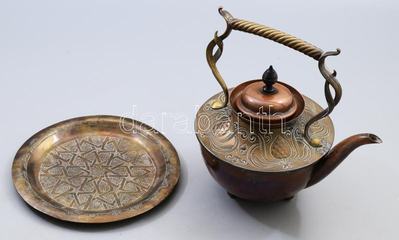 Keleti réz kanna, alátét tállal, m: 21 cm