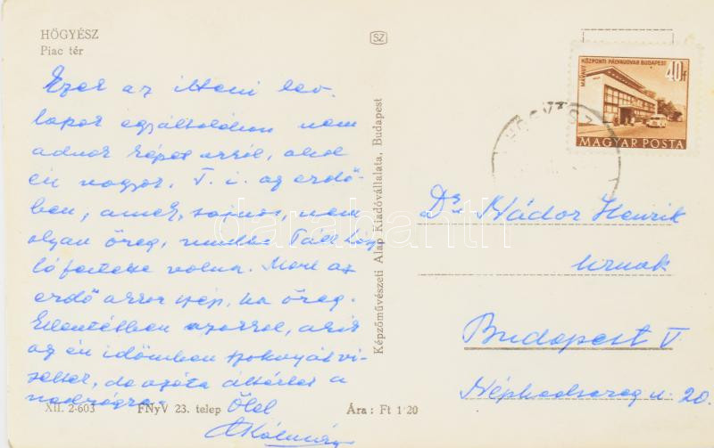 ca 1960 Csathó Kálmán (1881-1964) író tintával írt, autográf levelezőlapja Nádor Henrik ovrosnak Högyészről, érdekes szöveggel. "az erdő... nem lyan öreg, mintha Páll Lajos lé festettet volna"