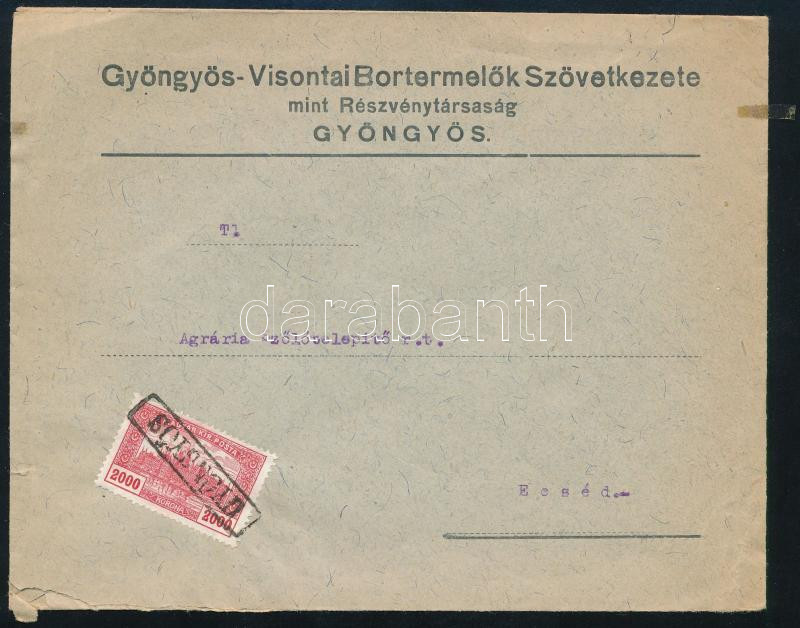 ~1924 Levél 2000K egybélyeges bérmentesítéssel, "GYÖNGYÖS" v...
