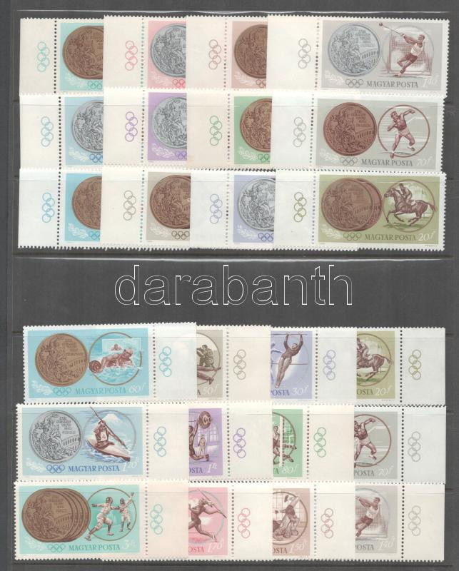 1965 Olimpiai érmesek 2 sor minden értéke bal ill. jobb oldali olimpiai ötkarikás szelvénnyel