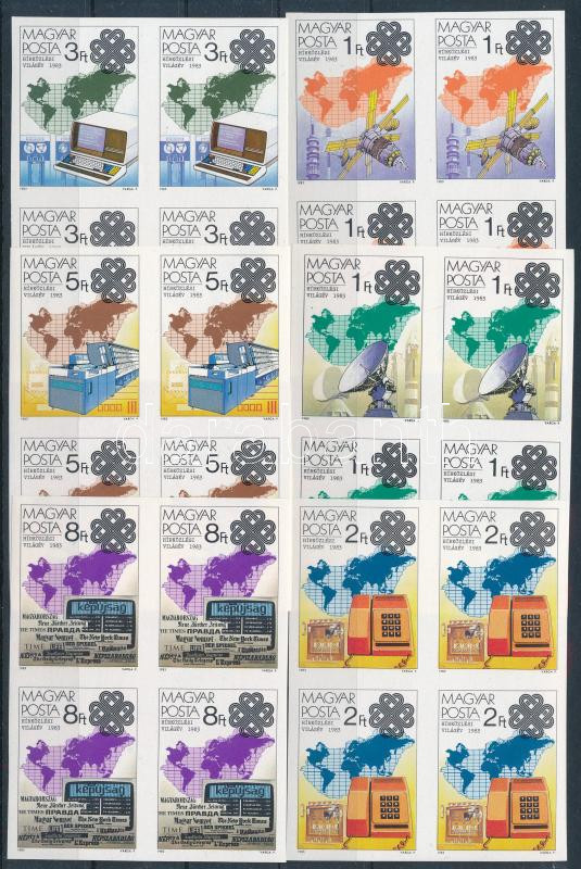 1983 Hírközlési világév vágott sor négyestömbökben / Mi 3636-3641 imperforate set in block of 4