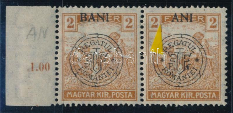 Kolozsvár 1919 Arató 2f ívszéli pár, a jobb oldali B betű nélkül "ANI" felirattal, Bodor vizsgálójellel