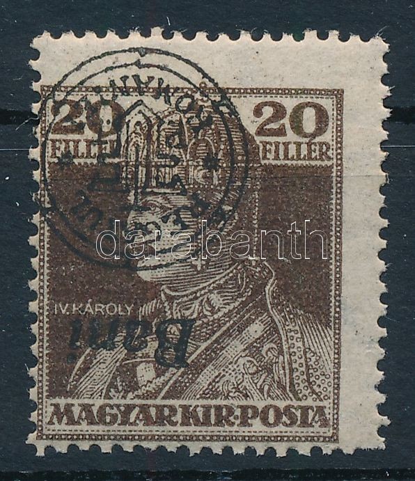 https://www.darabanth.com/en/496-Online-auction/496.0/Hungarian-philately-and-postal-history/Occupation-and-local-issues-1919-1921-with-guarantee~1000047/Nagyvarad-1919-Karoly-20f-forditott-felulnyomassal-Bodor-vizsgalojellel~II2630448