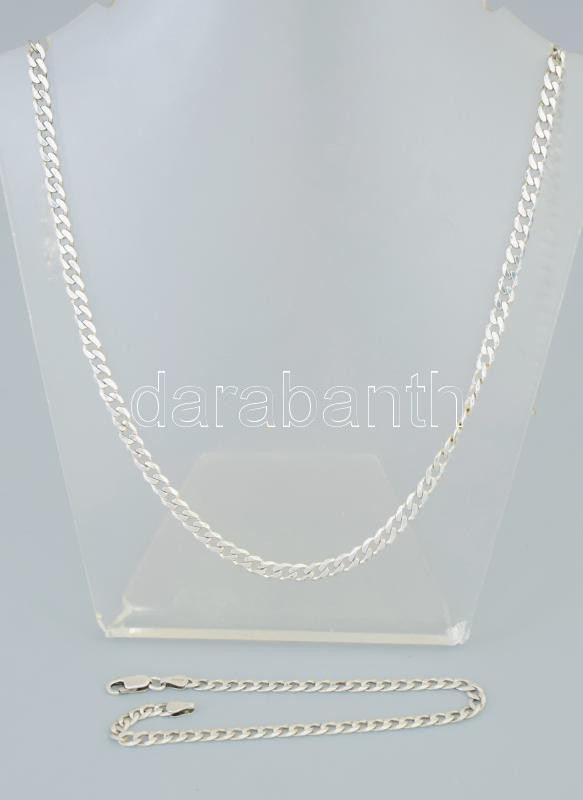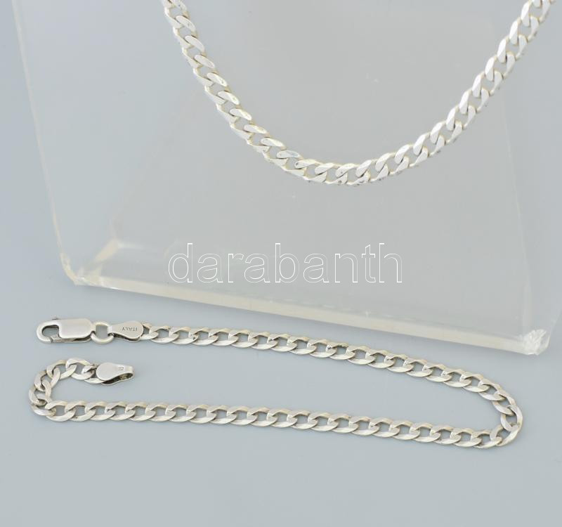 Ezüst(Ag) lapos pancer nyaklánc, jelzett, h: 50 cm és karkötő, h: 21 cm, jelzett, nettó: 20,7 g