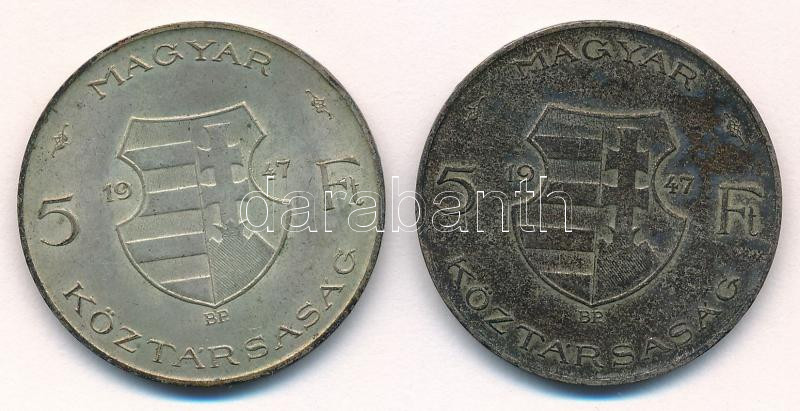 https://www.darabanth.com/en/496-Online-auction/496.0/Numismatics/Hungarian-coins-and-coins-with-Hungarian-mint-marks~1500009/1947-5Ft-Ag-Kossuth-2x-TXF-VF-patina3Cbr-3E-Adamo-F81~II3387163