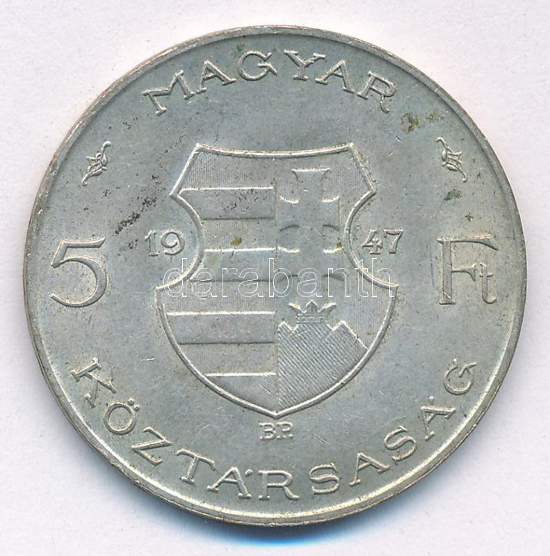 https://www.darabanth.com/en/496-Online-auction/496.0/Numismatics/Hungarian-coins-and-coins-with-Hungarian-mint-marks~1500009/1947-5Ft-Ag-Kossuth-TAU-patina-Adamo-F81~II2935770