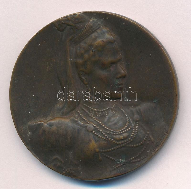 Kun József (1879-1946) 1912. "Országos Háziipari és Amatőr Kiállítás Miskolczon - 1912" kétoldalas, bronz plakett (40mm) T:XF patina
