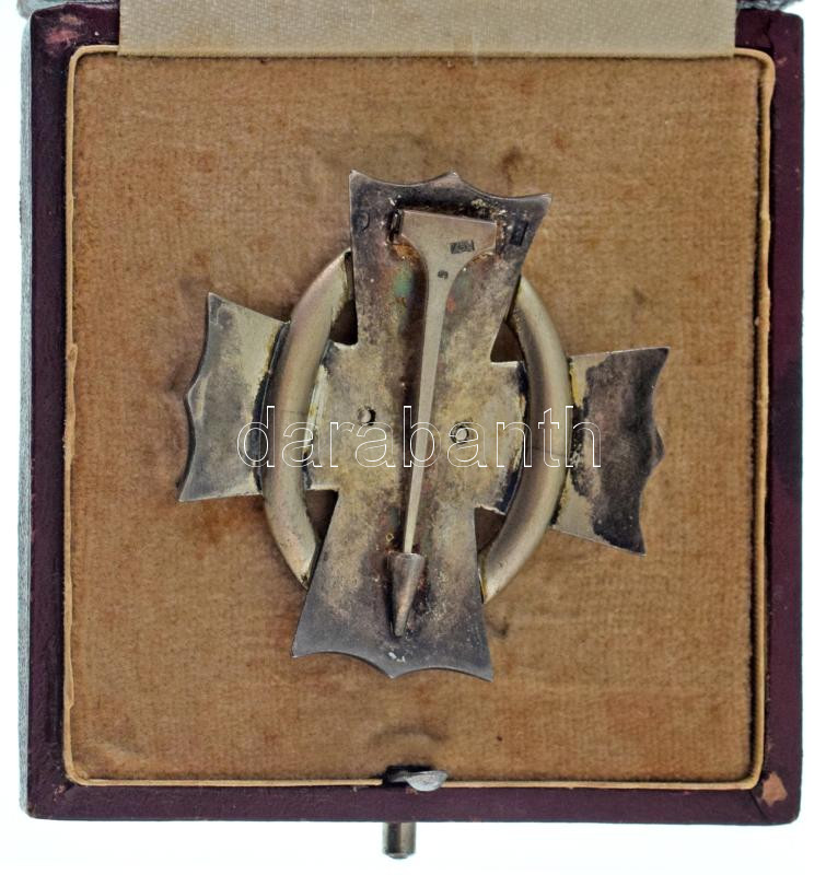 Description: 1916. "A Polgári Hadi Érdemkereszt III. osztálya " zománcozott, jelzett Ag kitüntetés, a hátlapon a tűn "R&F" jelzéssel, eredeti dísztokban (46x46mm) T:AU / Hungary 1916. "War Cross for Civil Merit, 3rd Class " enamelled, hallmarked Ag decoration, with "R&F" maker's mark on the on the needle, in original case (46x46mm) C:AU NMK 290.