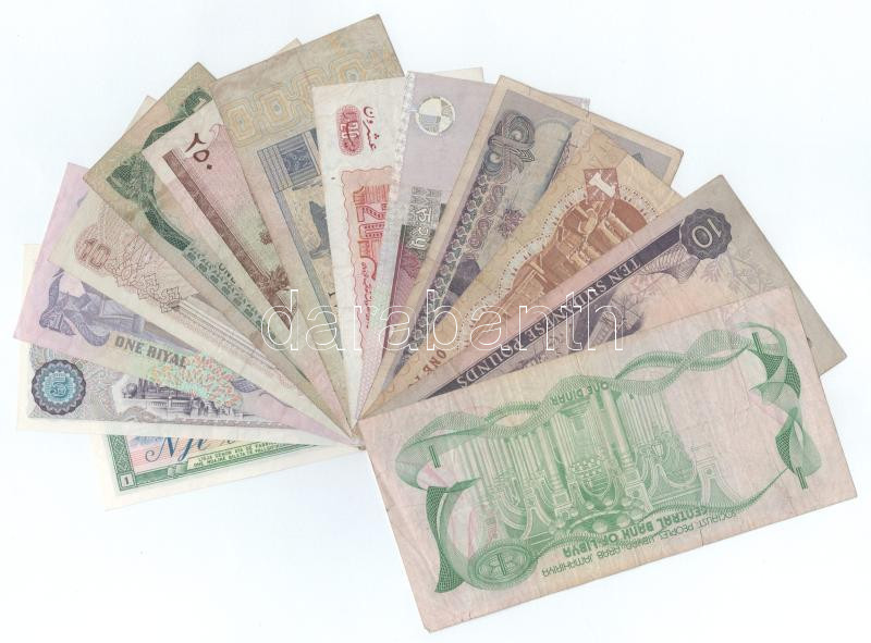 13db-os vegyes külföldi bankjegy tétel, benne javarészben afrikai + ázsiai bankjegyekkel (Ghána, Szudán, Qatar, stb.) T:F,VG, közte szép papír és egy AU