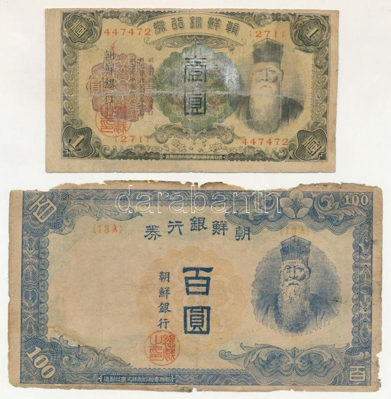 Korea (under Japanese rule) ND(1932) 1 Yen + ND(1947) 100 Yen / 100 Won C:VG,G