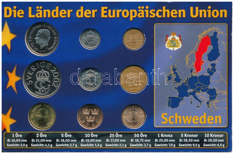 Svédország 1971-2007. 1ö-10K (9xklf) forgalmi összeállítás karton &quo... https://www.darabanth.com/en/496-Online-auction/496.0/Numismatics/Worldwide-silver-and-metal-coins~2500111/Svedorszag-1971-2007-1o-10K-9xklf-forgalmi-osszeallitas-karton-Die-Lander-der-Europaisc~II3393292