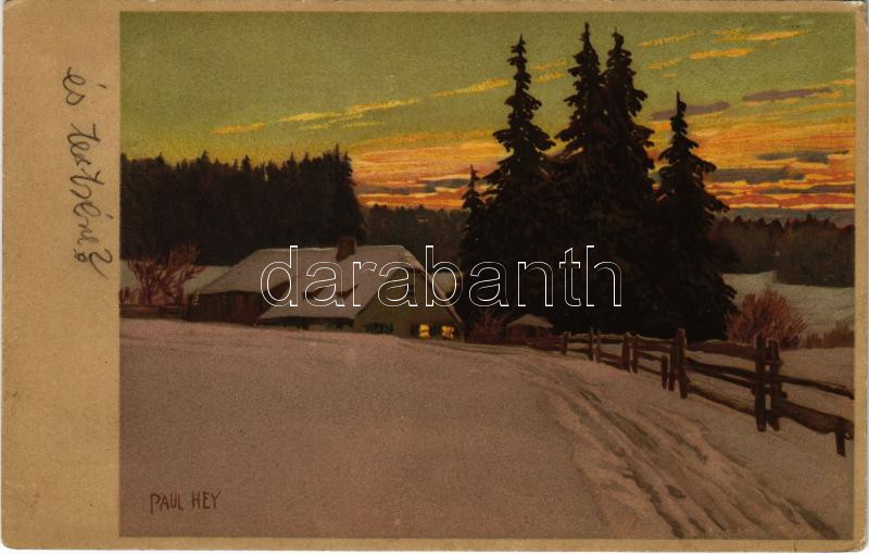 1907 Winter landscape. Meissner & Buch Künstler-Postkarten Serie 1434. "Im tiefen Schnee" litho s: Paul Hey (EK)