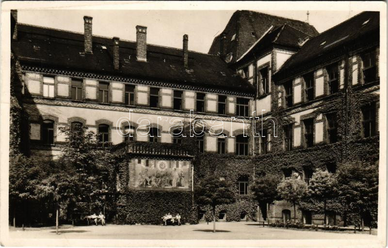 1942 Budapest VII. Fasori evangélikus gimnázium udvara. Városligeti fasor 17-21.