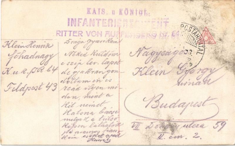 Description: Weihnachten daheim und im Felde. Herzliche Weihnachts-Grüsse! / WWI German military, Christmas greetings, boy in uniform + "Kais. u. Königl. Infanterieregiment Ritter von Auffenberg Nr. 64." (EK)