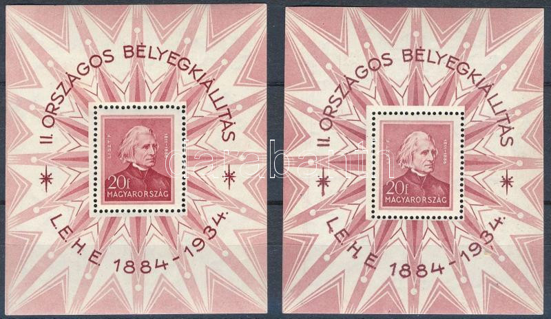 1934 2 db LEHE blokk erős színeltéréssel, az erősen festékezett blokko...