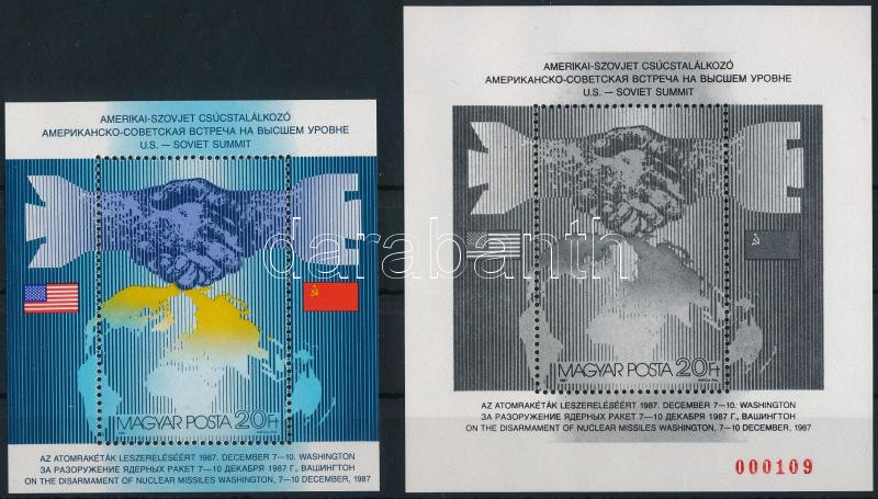1987 Csúcstalálkozó feketenyomat blokk piros sorszámmal + normál blokk...