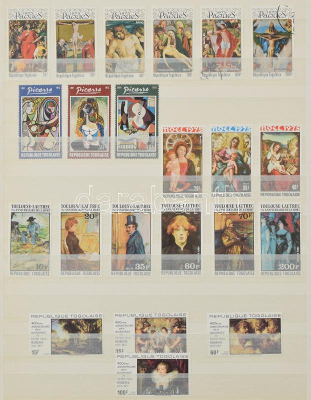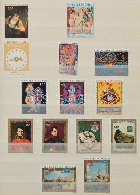 Description: Vegyes külföldi bélyegek A4-es berakóban, benne Svájc, Niger, Francia Polinézia, Szenegál, Csád, Togo stb. Sok jó festmény és művészet motívum, svájci Pro Juventute!