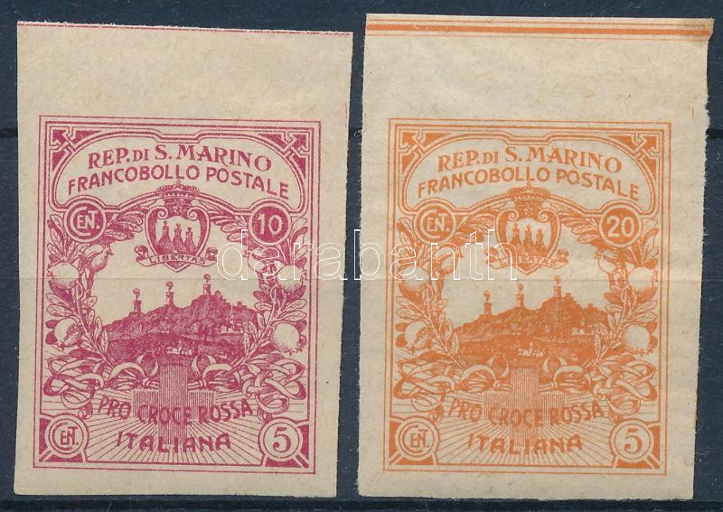San Marino 1916 Kiadatlan vágott ívszéli bélyegek, 10c+5c és 20c+5c, a...