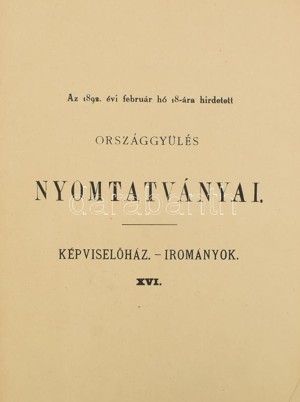 Az 1892. évi február hó 18-ára hirdetett országgyűlés képviselőházának... https://www.darabanth.com/en/498-Online-auction/498.0/Books/Books-Law~2000123/Az-1892-evi-februar-ho-18-ara-hirdetett-orszaggyules-kepviselohazanak-iromanyai-XVI-k~II3214922