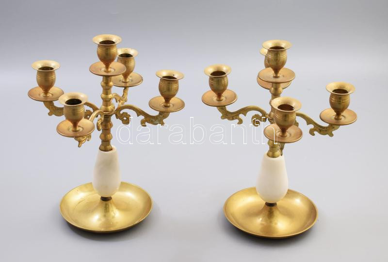 Ötágú réz gyertyatartó pár, m: 26,5 cm