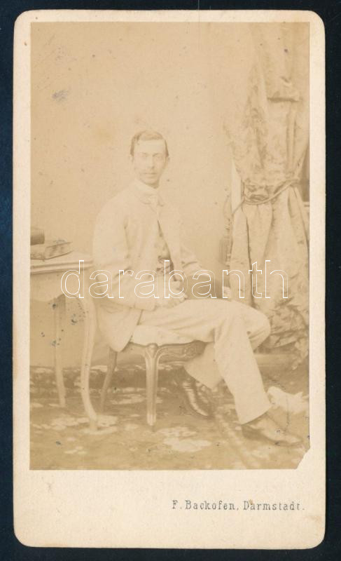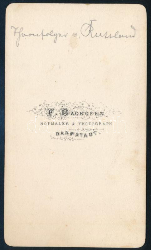 cca 1860 Nyikolaj Alekszandrovics Romanov (1843-1865) orosz koronaherceg, keményhátú fotó F. Backofen darmstadti műterméből, 10,5×6,5 cm