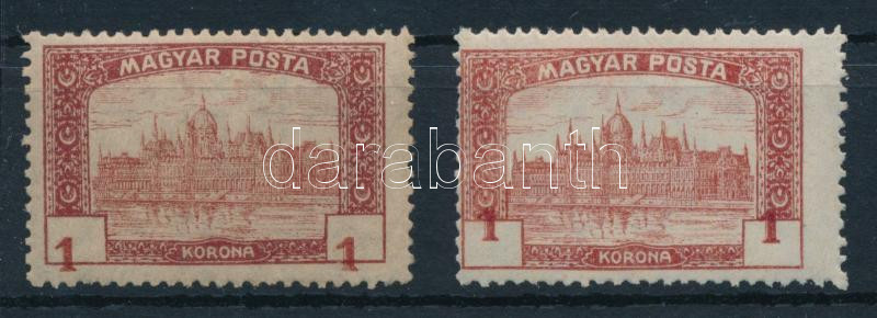1919 Magyar Posta 2 x 1K az értékszámok lefelé ill. felfelé tolódásával + egyik bélyeg elfogazva