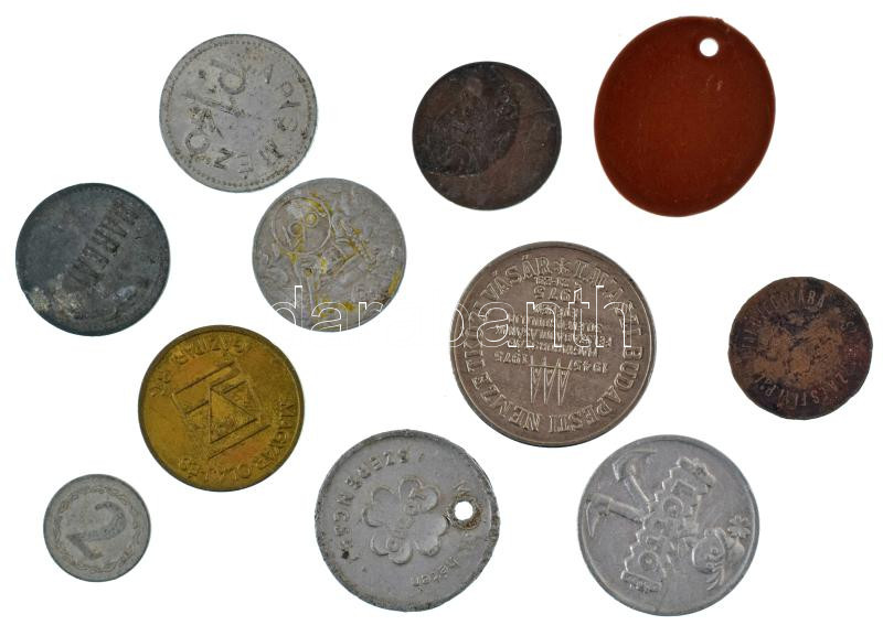Vegyes, 11db-os magyar zseton / bárca tétel, közte "HARKAI M." 20 értékű Zn bárca T:XF-F, közte lyukasztott