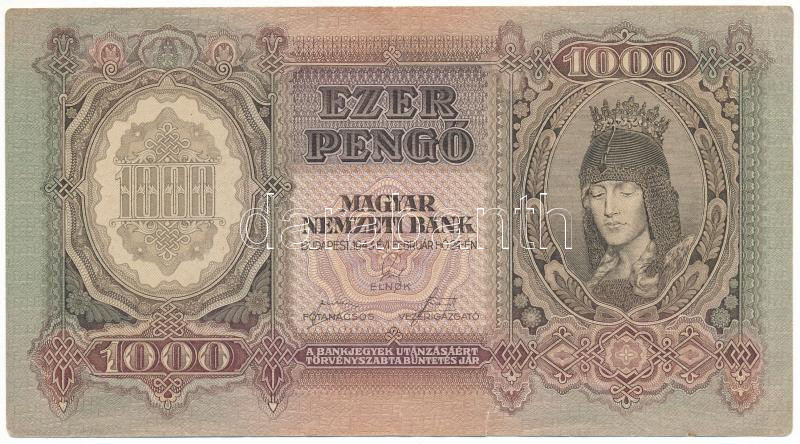 https://www.darabanth.com/en/498-Online-auction/498.0/Numismatics/Hungarian-Banknotes~1000097/1943-1000P-F-063-074130-TF-also-el-menten-szakadas3Cbr-3E-Adamo-P21~II3398347